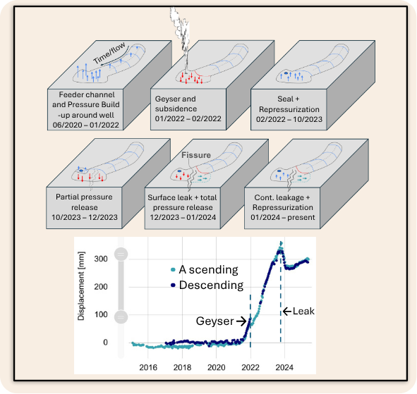 By contrast, the Toyah Geyser in October 2024 erupted without prior InSAR detectable deformation. This indicated a completely different failure mechanism: an internal casing collapse in the Delaware Mountain Group, not a slow building pressure anomaly.